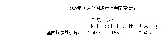 2009年10月全國煤炭社會(huì)庫存統(tǒng)計(jì)