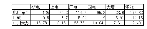 2009年12月3日直供電廠煤炭庫(kù)存統(tǒng)計(jì)