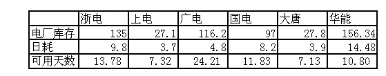 2009年12月8日直供電廠煤炭庫(kù)存統(tǒng)計(jì)
