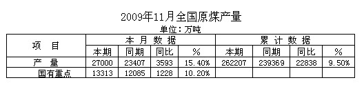 2009年1-11月份我國(guó)各類煤礦生產(chǎn)情況統(tǒng)計(jì)