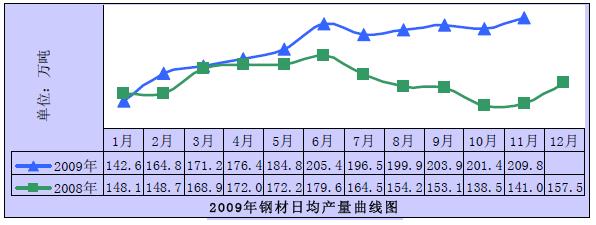 11 月份,鋼鐵企業(yè)進(jìn)入檢修期,鋼、鐵產(chǎn)品產(chǎn)量呈下降趨勢,而鋼材產(chǎn)量卻創(chuàng)歷史新高,鋼材庫存居高難下,鋼鐵市場弱勢調(diào)整,漲跌幅度不大,鋼材凈出口規(guī)模繼續(xù)擴(kuò)張,10月,鋼鐵行業(yè)保持盈利狀態(tài),煤炭單耗指標(biāo)平穩(wěn)下降。近期來看,鋼材市場將呈現(xiàn)調(diào)整—趨穩(wěn)—小幅回升的走勢,展望2010 年全年,加快淘汰落后產(chǎn)能和推進(jìn)跨地區(qū)重組將成為鋼鐵行業(yè)調(diào)整的主旋律,鋼材市場將保持總體回暖的態(tài)勢。