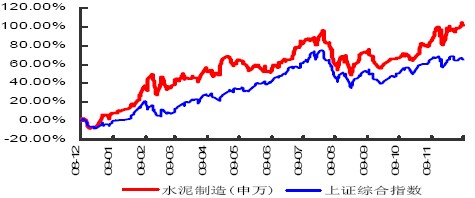1.1、二級市場表現(xiàn)回顧:指數(shù)強(qiáng)于大盤 圖1:今年以來水泥制造和上證綜合指數(shù)比較