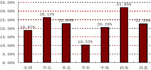 圖4:全國及主要區(qū)域2009年1-10月累計(jì)產(chǎn)量同比增速
