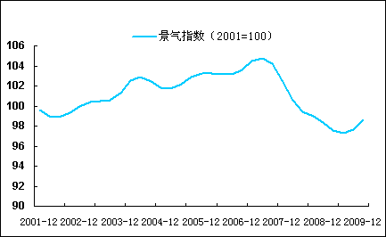 2009年1-4季度,電力行業(yè)的景氣指數(shù)為98.62(2001年=100),比1-3季度上升0.98個點,連續(xù)上升三個季度。