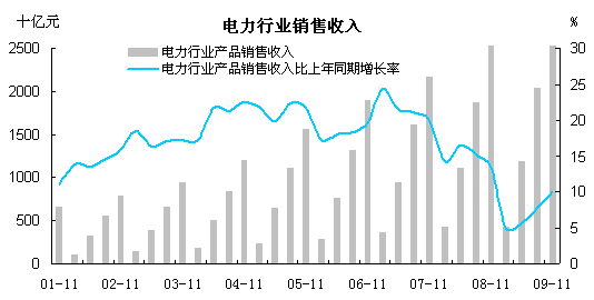 電力行業(yè)銷售收入增速繼續(xù)穩(wěn)步上升