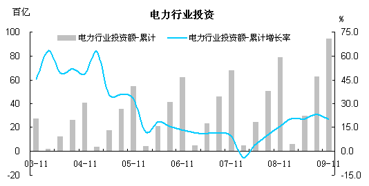 1-11月,電力、熱力的生產(chǎn)與供應(yīng)業(yè)投資額為9442.49億元,同比增長20.2%,增長速度較1-8月下降3.3個百分點。
