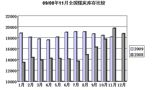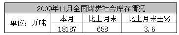 2009年11月全國煤炭社會庫存統(tǒng)計