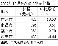 中南地區(qū)的水泥價格在廣州市場帶動下大幅度上漲。其中廣東廣州地區(qū)的水泥價格第四次大幅度上調(diào),幅度為40~50元/噸,P?O 42.5水泥的價格攀升至420元/噸。主要是西江水位下降,導(dǎo)致廣西水泥只能通過汽車運(yùn)輸,運(yùn)輸成本大幅上升;同時市場需求一直呈現(xiàn)持續(xù)上升態(tài)勢,使各企業(yè)供應(yīng)緊張,個別企業(yè)甚至空庫。在這兩大因素的推動下,廣州水泥價格環(huán)比增長了10.53%。