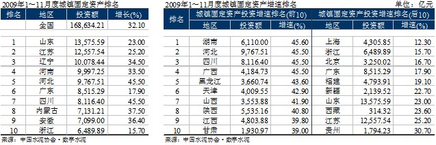 2009年1~11月,全國累計完成城鎮(zhèn)固定資產(chǎn)投資168,634.21億元,同比增長32.14%,比去年同期依然提高了5.3個百分點。