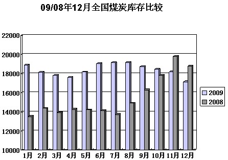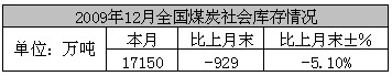 2009年12月全國煤炭社會庫存統(tǒng)計