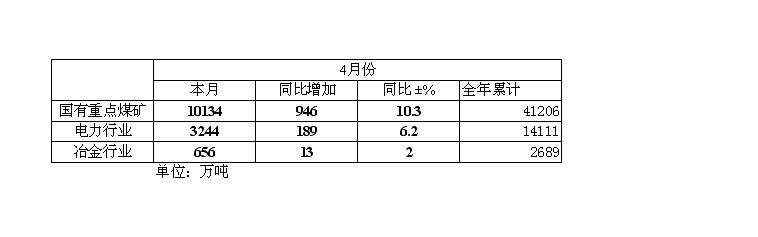 2008年4月我國(guó)煤炭銷(xiāo)量情況統(tǒng)計(jì)