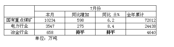 2008年7月我國煤炭銷量情況統(tǒng)計