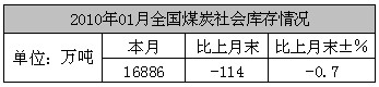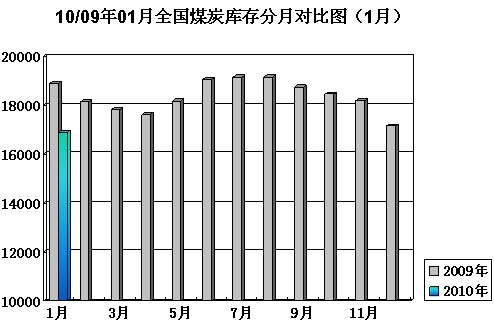2010年1月全國煤炭社會庫存統(tǒng)計