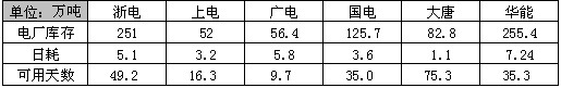 2010年2月20日直供電廠煤炭庫存統(tǒng)計(jì)