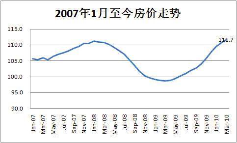 2010年3月份,全國(guó)70個(gè)大中城市房屋銷售價(jià)格同比上漲11.7%,其中新建住宅銷售價(jià)格同比上漲14.2%,新建商品住宅價(jià)格同比上漲15.9%。