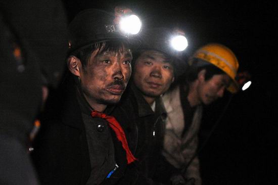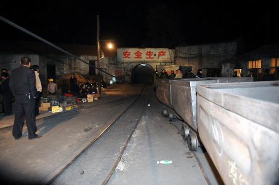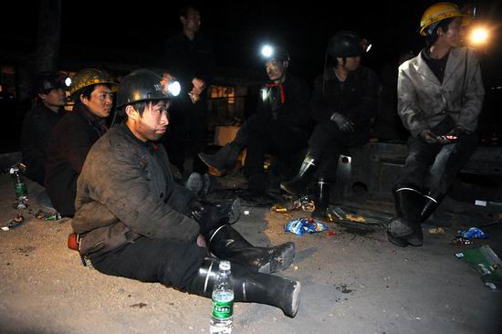 5月19日凌晨,礦工們在井口附近焦急的等待工友的消息。