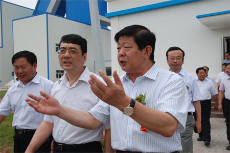 7月15日,在榆樹井煤礦,臨礦集團董事長、黨委書記李義文與國家煙草專賣局副局長李克明交流。