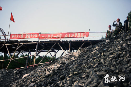 發(fā)生透水事故的礦區(qū)內(nèi)高懸的安全標語。