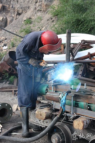 技術(shù)人員現(xiàn)場對排水器材進行焊接。