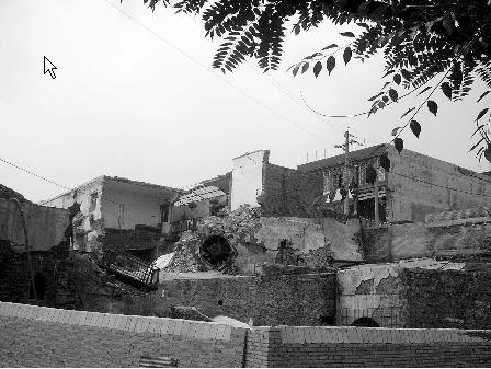 站在圍墻外亂石堆上向里張望,能看到房屋倒塌,鋼筋橫飛,以及那個曾被瓦斯爆炸熱浪掀上天又落到離原地四五米遠的碩大鼓風機。