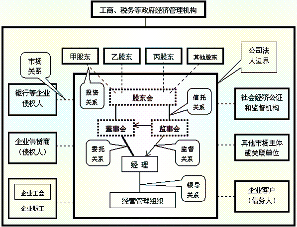 從圖中可以看出,公司實(shí)現(xiàn)了投資者股權(quán)、企業(yè)法人財(cái)產(chǎn)權(quán)和經(jīng)營者經(jīng)營權(quán)的三權(quán)分離,而且公司法人治理因采用委員會(huì)集體治理模式而具有內(nèi)在的制衡機(jī)制,股東會(huì)、董事會(huì)、監(jiān)事會(huì)和經(jīng)營者均有與自己權(quán)利相適應(yīng)的職責(zé)范圍和義務(wù),相關(guān)各方的責(zé)、權(quán)、利等關(guān)系明確而清晰。