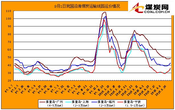 | 秦皇島 - 廣州(4-5萬(wàn)dwt): | 48 | 1336.36 | 49 | 1344.37 | 0.60% |