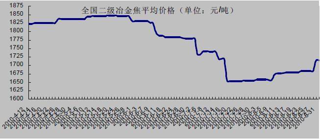 本周國內(nèi)焦炭市場價格小幅上漲,成交狀況基本良好,F(xiàn)山西、山東、河北等主導城市二級冶金焦價格分別為:1700元/噸(車板價);1750元/噸(出廠價); 1800元/噸(含稅車板價)。