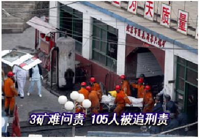 我國依法對平頂山兩起礦難和湘潭礦難共三起特別重大事故71名事故責(zé)任人給予黨紀(jì)、政紀(jì)處分;105名涉嫌犯罪的責(zé)任人已被移送司法機(jī)關(guān)依法追究刑事責(zé)任。