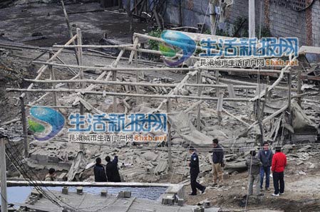 發(fā)生爆炸的工棚只剩下幾根木架子