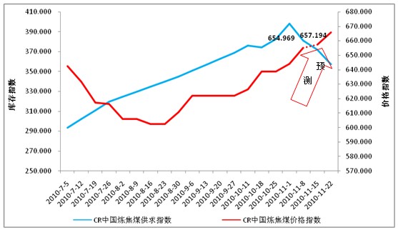 截止2010年11月15日,CR中國焦炭綜合指數(shù)195.142點(diǎn),較上周上漲10.035點(diǎn),增幅5.42%。其中CR中國焦炭價格指數(shù)為184.549點(diǎn),與上周上漲2.251點(diǎn),漲幅1.23%;CR中國焦炭庫存指數(shù)為94.572點(diǎn),較上周下跌3.911點(diǎn),降幅3.97%。