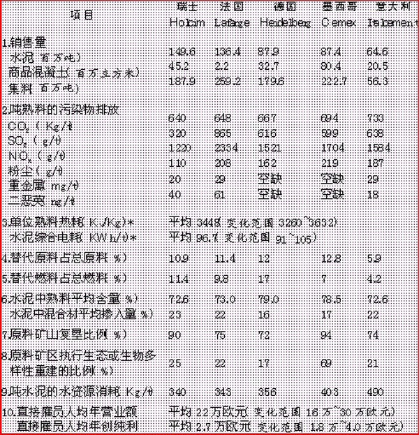 注:上表列舉了2007年國際五大水泥公司的一些重要運營指標,相當于國際中等稍偏上水平,并非國際先進水平。