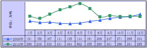 圖 4 2009-2010 年鋼材出口情況對(duì)比