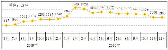 據(jù)印度國(guó)家礦業(yè)開發(fā)公司一位負(fù)責(zé)人透露,該公司出口鐵礦石價(jià)格將從 2011 年 1 月起上調(diào) 3%,該價(jià)格將適用整個(gè)第一季度,但并未正式公布,隨后又有報(bào)道稱,印度政府計(jì)劃在 2011 年 4 月 1 日開始的 2011-2012 財(cái)政年度對(duì)鐵礦石出口統(tǒng)一加征 20%的出口關(guān)稅,將進(jìn)一步推高國(guó)際礦價(jià)。另?yè)?jù)路透社報(bào)道,巴西礦業(yè)巨頭淡水河谷 2011 年 1 月料將季度鐵礦石合約價(jià)格提高 8.8%,至每噸 149.20 美元,這一漲幅是根據(jù)上期(2010 年 9 月 1 日-11 月30 日)普氏指數(shù)的漲幅確定的。2011 年第一季度鐵礦石價(jià)格上漲已成定局。正是基于對(duì)鐵礦石漲價(jià)的預(yù)期,鋼廠、貿(mào)易商早已做好了囤貨準(zhǔn)備,2010 年 11 月鐵礦石進(jìn)口量較 10 月份增長(zhǎng) 25.5%,至 5738 萬(wàn)噸,12 月進(jìn)口量繼續(xù)微量增長(zhǎng),達(dá)到 5808 萬(wàn)噸,國(guó)內(nèi)鐵礦石庫(kù)存持續(xù)上升, 據(jù)蘭格鋼鐵網(wǎng)數(shù)據(jù), 截至 1 月7 日, 全國(guó) 19 個(gè)主要港口鐵礦石庫(kù)存量升至 8090萬(wàn)噸。進(jìn)口礦的激增導(dǎo)致鐵礦石市場(chǎng)持續(xù)追漲,短期內(nèi)推高了鋼價(jià),然而,2011 年鋼鐵需求具有很大的不確定性,且第一季度是用鋼淡季,鋼廠轉(zhuǎn)嫁成本壓力可謂困難重重。