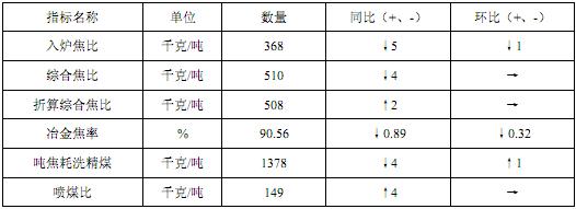 與前 10 個(gè)月比,1-11 月大中型鋼鐵企業(yè)煉鐵工序中,各項(xiàng)主要技經(jīng)指標(biāo)基本穩(wěn)定,入爐焦比略有上升,煉焦工序中,冶金焦率下降,噸焦耗洗精煤上升。