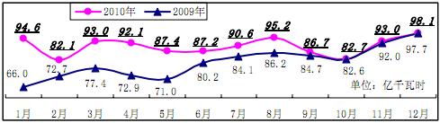 。ㄒ唬2010 年單月用電量增幅前高后低,表明經(jīng)濟(jì)結(jié)構(gòu)調(diào)整效果