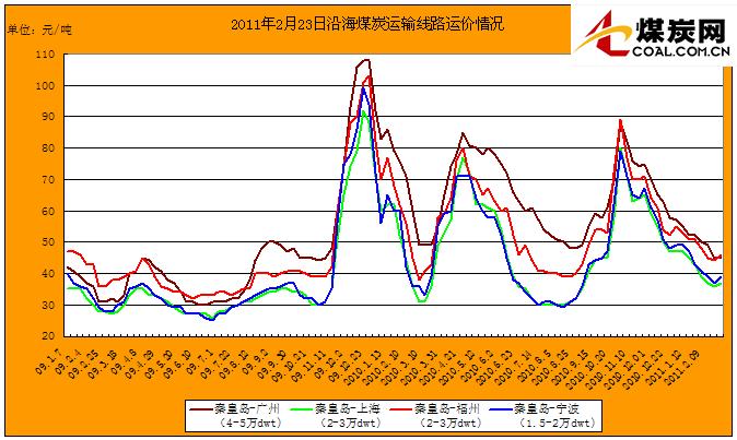 | 秦皇島 - 福州(2-3萬dwt): | 44 | 1001.09 | 46 | 1027.87 | 2.70% |