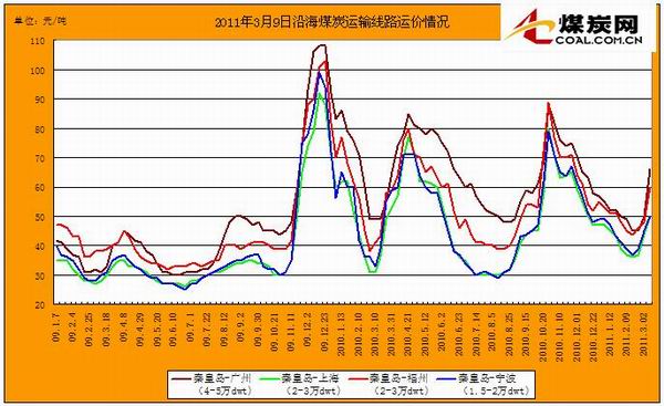 | 秦皇島 - 廣州(4-5萬dwt): | 50 | 1379.12 | 66 | 1688.59 | 22.40% |