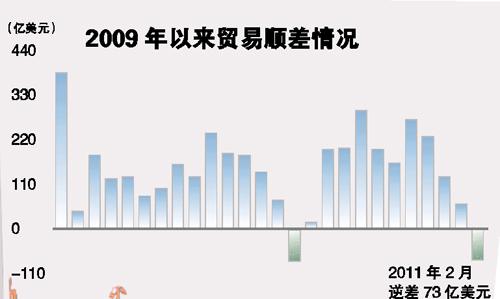 中國2月意外出現(xiàn)貿(mào)易逆差,上一次貿(mào)易逆差的出現(xiàn)是在2010年3月。分析師認(rèn)為,中國高順差的時代恐怕已過去,在未來的幾個月內(nèi),可能還會再見到幾次貿(mào)易逆差。