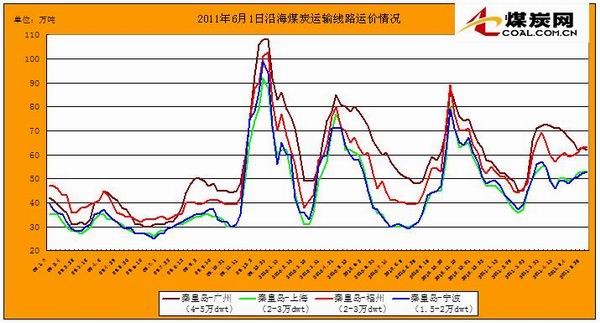 | 秦皇島 - 廣州(4-5萬dwt): | 63 | 1630.81 | 62 | 1629.4 | -0.10% |