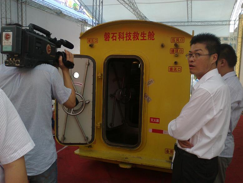 上圖:貴州電視臺(tái)在采訪磐石科技救生艙
