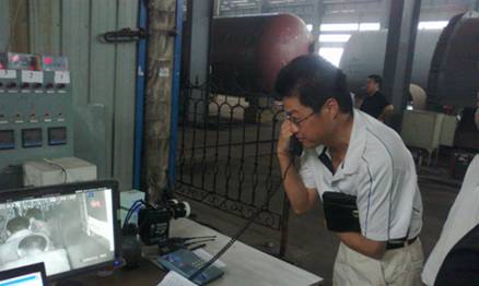 上圖:貴州省煤監(jiān)局領(lǐng)導(dǎo)來(lái)磐石公司參觀,正在和艙內(nèi)人員通話