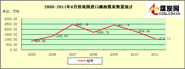 2005-2011年6月份我國進口越南煤炭數(shù)量統(tǒng)計