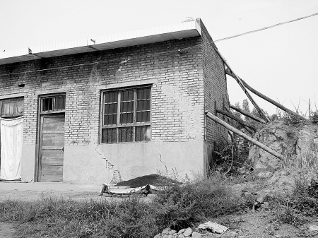 桑樹坪鎮(zhèn)趙家山村很多房子都裂縫,成了危房。記者石俊榮攝