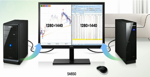SA850還可以支持雙屏顯示功能,在同時接駁兩臺主機的情況下,每臺主機可以在SA850上可顯示1280×1440的畫面,對于部分行業(yè)用戶而言,該項功能可以幫助他們更快速的處理多重復雜的工作任務。