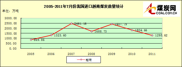 2005-2011年7月份我國(guó)進(jìn)口越南煤炭數(shù)量統(tǒng)計(jì)