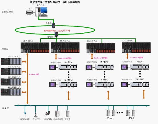 開灤有限責任公司錢加營礦業(yè)分公司選煤廠,是一座能夠年處理能力400萬噸的大型現(xiàn)代化礦井型選煤廠。1983年開始籌建,1989年11月建成投產(chǎn),主要工藝及成套設備從波蘭引進,1992年4月達產(chǎn)。生產(chǎn)工藝為:13~150mm塊煤采用重介立輪再選,0.5~13mm末煤采用重介旋流器主再選,0~0.5mm煤泥直接浮選,尾煤濃縮壓濾。主要產(chǎn)品為10~12級煉焦精煤,洗塊煤、洗混煤、煤泥。2003年~2004年該洗煤廠主要設備進行了升級改造,增加了進口的主要設備旋流器、振動篩、離心機和磁選機等。2009年,洗煤廠再次投資擴容一個浮選車間和一套863新浮選工藝設備。此次擴容的電氣設備的綜合管理,為北京和利時自動化驅(qū)動技術有限公司實現(xiàn)煤礦行業(yè)的智能供配電管控一體化自動控制提供了難得的的平臺和機遇。2011年6月底確定該項目正式啟動后,公司的煤炭事業(yè)部立即組織相關人力物力重點專攻,從2011年7月技術交流確定方案開始,8月硬件到現(xiàn)場,9月份調(diào)試及正式投運,項目組成員圓滿順利的完成了該項目。改造后的選煤廠,洗選效率提高,設備維護效率提高,自動化程度提高,配合新工藝的良好控制,洗煤廠年處理能力提高到了600噸煤左右。