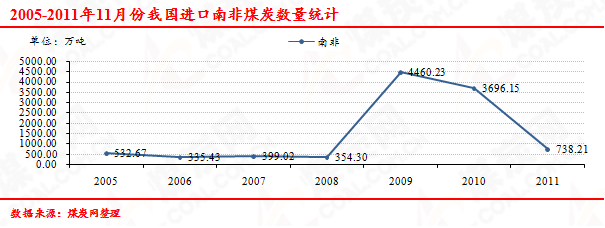 2005-2011年11月份我國進口南非煤炭數(shù)量走勢統(tǒng)計