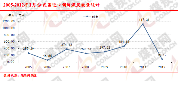 2005-2012年1月份我國進口朝鮮煤炭數(shù)量走勢統(tǒng)計