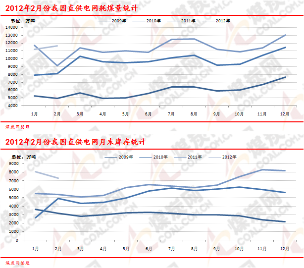 2012年02月全國重點發(fā)電企業(yè)耗煤/庫存情況 | |||||||||||