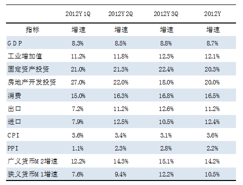 圖表2 2012年中國(guó)主要經(jīng)濟(jì)指標(biāo)預(yù)測(cè)